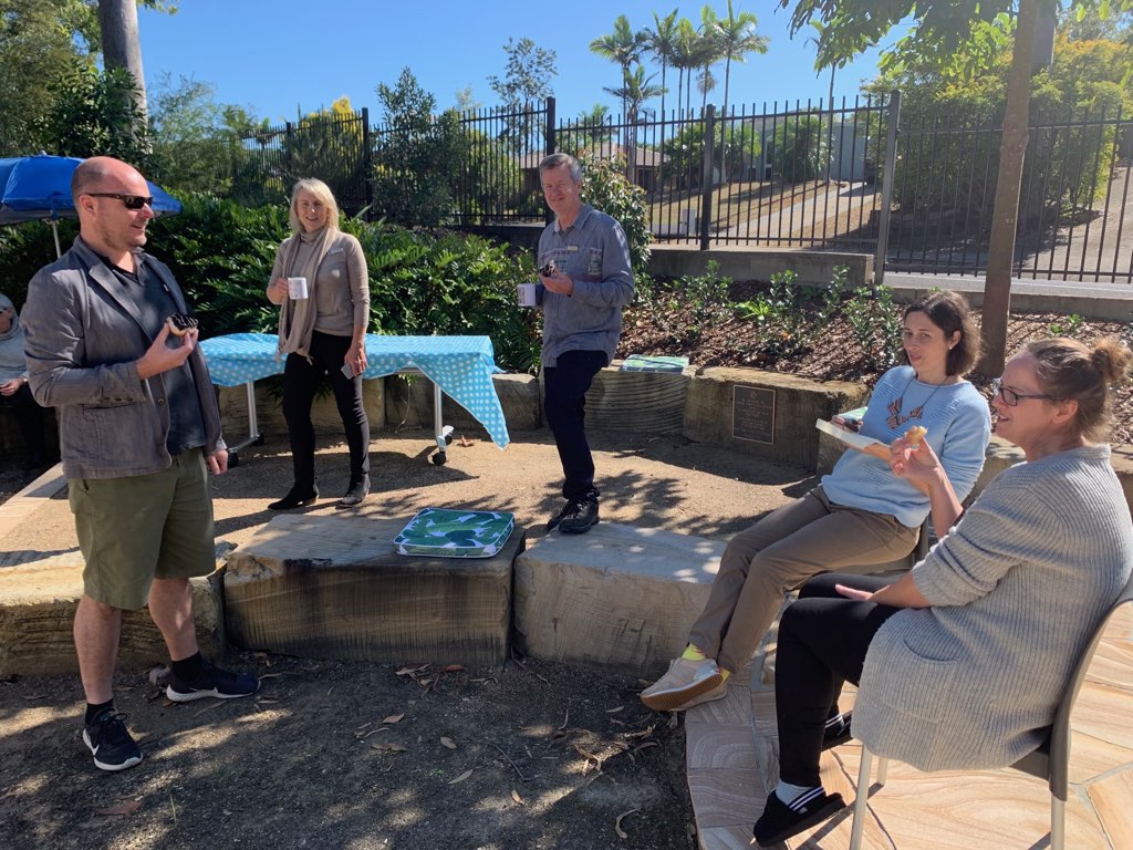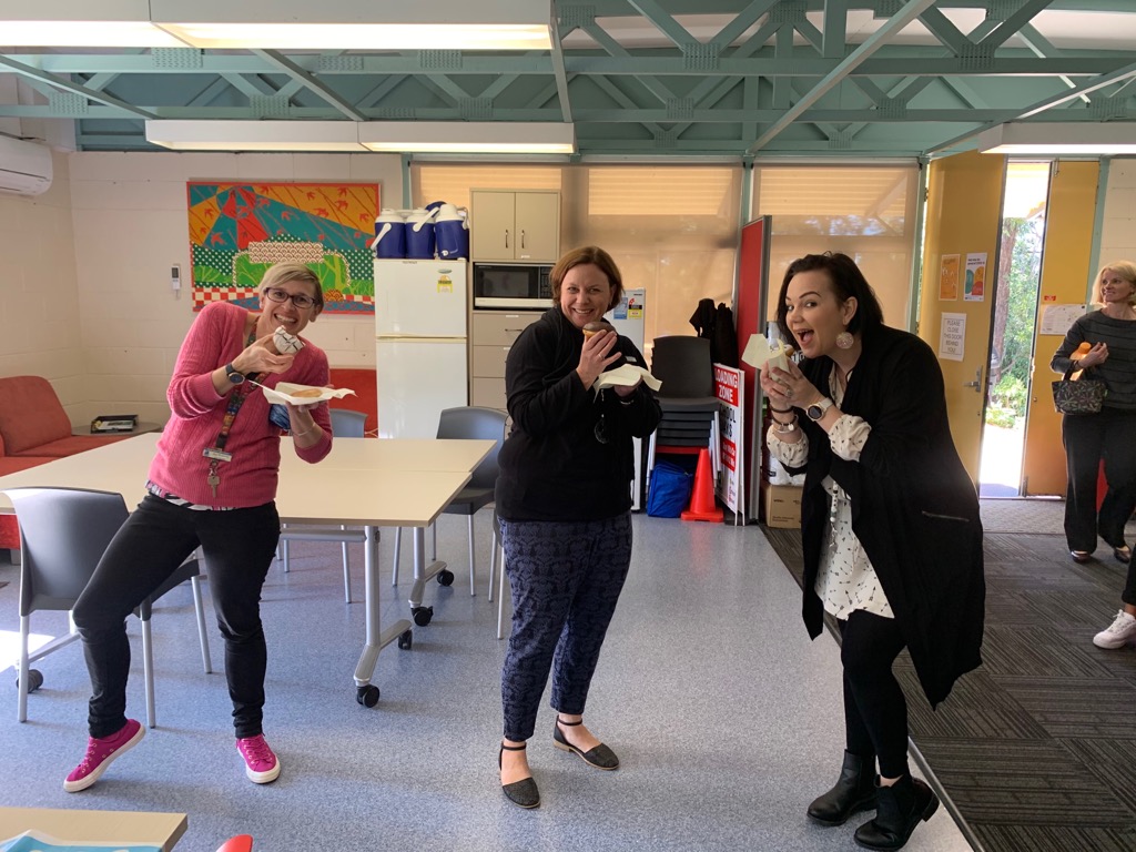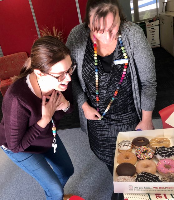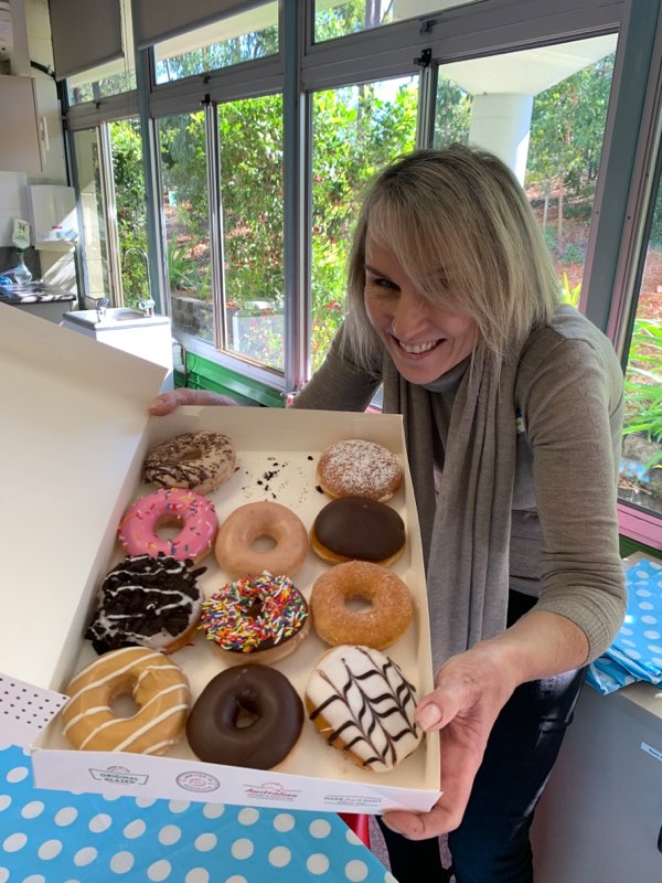 A few pics of the happy staff at Ferny Grove State School enjoying some Krispy Kreme doughnuts! And the six hampers donated for families in need.